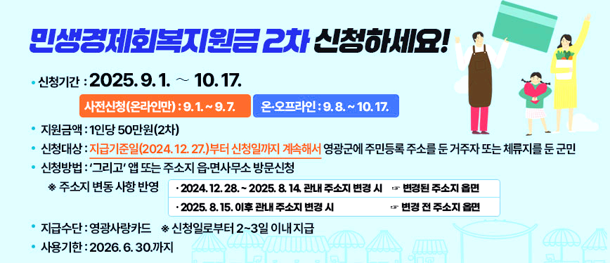 - 미성년자: 세대주가 신청하여 수령 (세대주 신분증 및 미성년자 ‘영광사랑카드’ 필요)